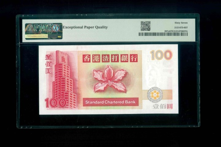 1999 香港渣打銀行 $100 PMG 67 EPQ 編號:FF968312(頂級雪白)