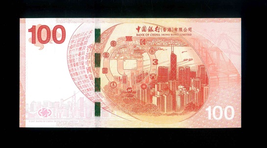 2017 香港中國銀行在港服務百週年紀念 $100 UNC 編號:HK061113(頂級雪白)