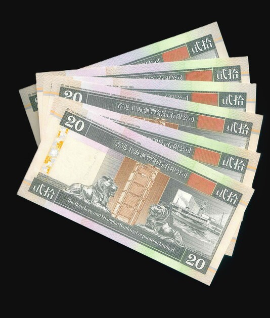 1995-2002 香港上海滙豐銀行 $20 UNC 編號:DP888889…(共6張,含豹子/獅子號)