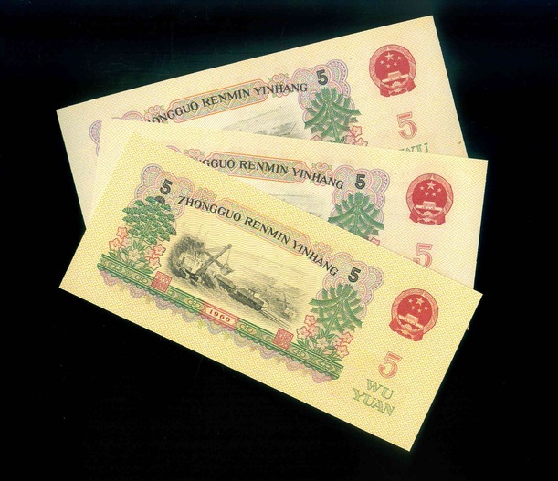 1960 中國人民銀行 $5 UNC 編號:I III 82220048…(共3張)