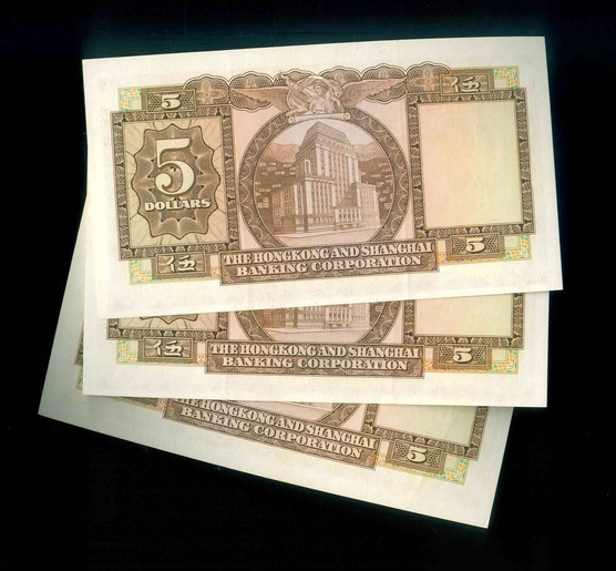 1972/1975 香港上海滙豐銀行 $5 EF-AU 編號:842307 EU…(共3張,趣味品,圖案上下移位)