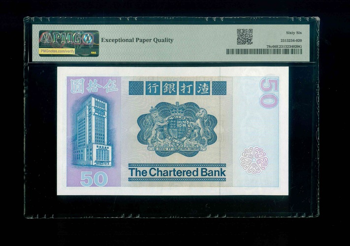 1982 香港渣打銀行 $50 PMG 66 EPQ 編號:D733820