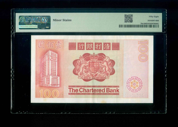 1982 香港渣打銀行 $100 PMG 58 編號:AC242430(Minor Stains)