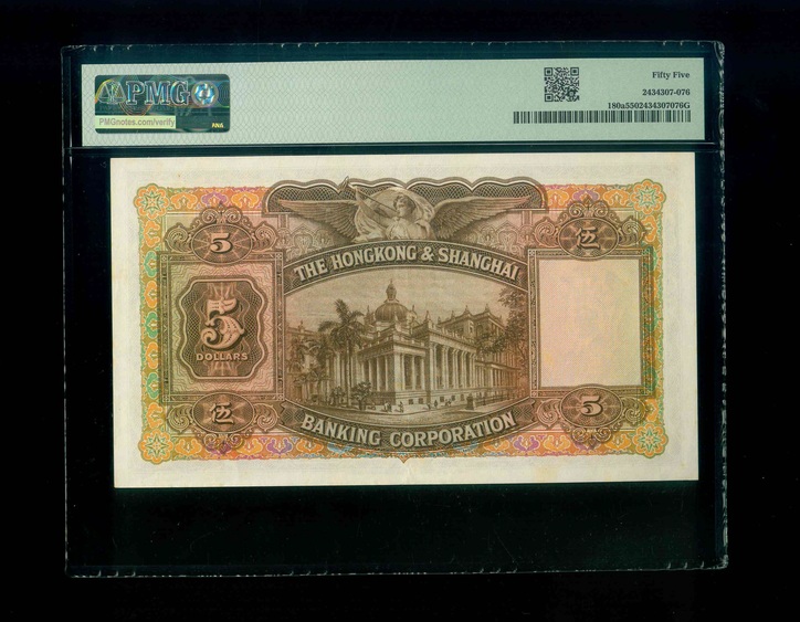 1958 香港上海滙豐銀行 $5 PMG 55 編號:J/H 672723