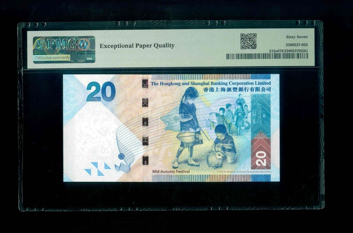 2016 香港上海滙豐銀行 $20 PMG 67 EPQ 編號:CJ777777(幸運全7,頂級雪白)