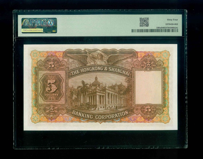 1954 香港上海滙豐銀行 $5 PMG 64 編號:D/H 200340