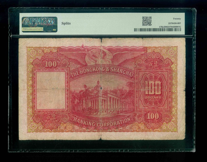 1948 香港上海滙豐銀行 $100 PMG 20 編號:E383873(Splits)