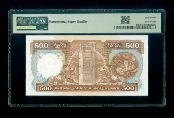 1989 香港上海滙豐銀行 $500 PMG 67 EPQ 編號:AN387914(頂級雪白)