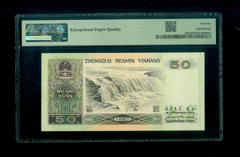 1980 中國人民銀行 $50 PMG 66 EPQ 編號:EX90168084(頂級雪白)