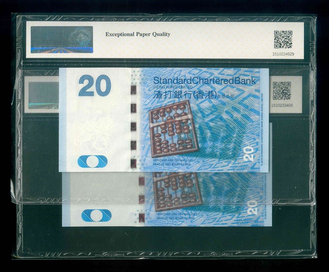 2010 香港渣打銀行 $20 GBCA 66 EPQ 編號:AG568888…(共2張,含獅子/豹子號,頂級雪白)