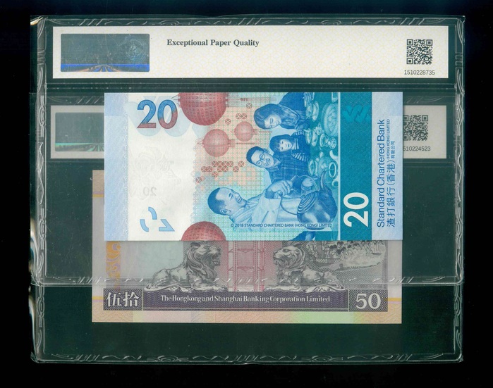 1998/2023 香港上海滙豐/ 渣打銀行 $50 $20 GBCA 66 EPQ 編號:AJ549971/DD050000(共2張,含雙冠/5萬號,頂級雪白)
