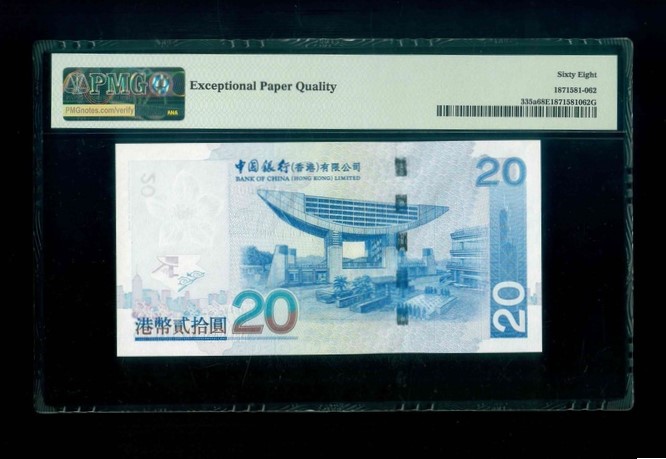 2003 香港中國銀行 $20 PMG 68 EPQ 編號:AY000022(細號,頂級雪白)