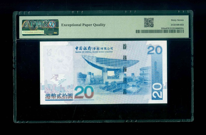 2008 香港中國銀行 $20 PMG 67 EPQ 編號:GQ000061(細號,頂級雪白)