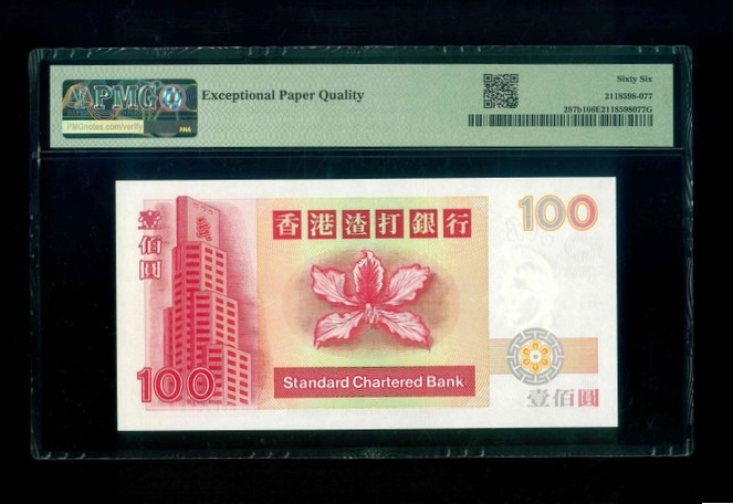 1997 香港渣打銀行 $100 PMG 66 EPQ 編號:A901394(頂級雪白)