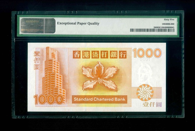 2002 香港渣打銀行 $1000 PMG 65 EPQ 編號:AK311077(頂級雪白)