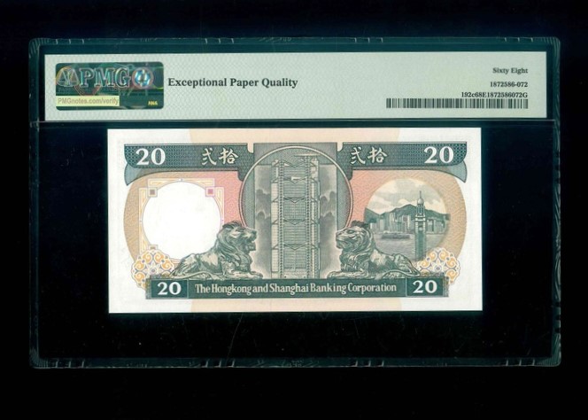 1989 香港上海滙豐銀行 $20 PMG 68 EPQ 編號:BG506314(頂級雪白)