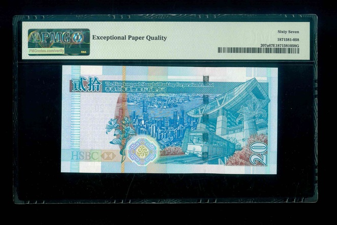 2003 香港上海滙豐銀行 $20 PMG 67 EPQ 編號:AY000022(細號,頂級雪白)