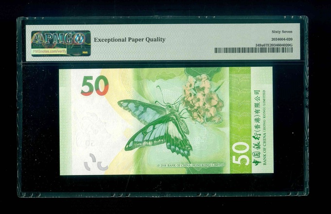 2018 香港中國銀行 $50 PMG 67 EPQ 編號:AB959188(頂級雪白)