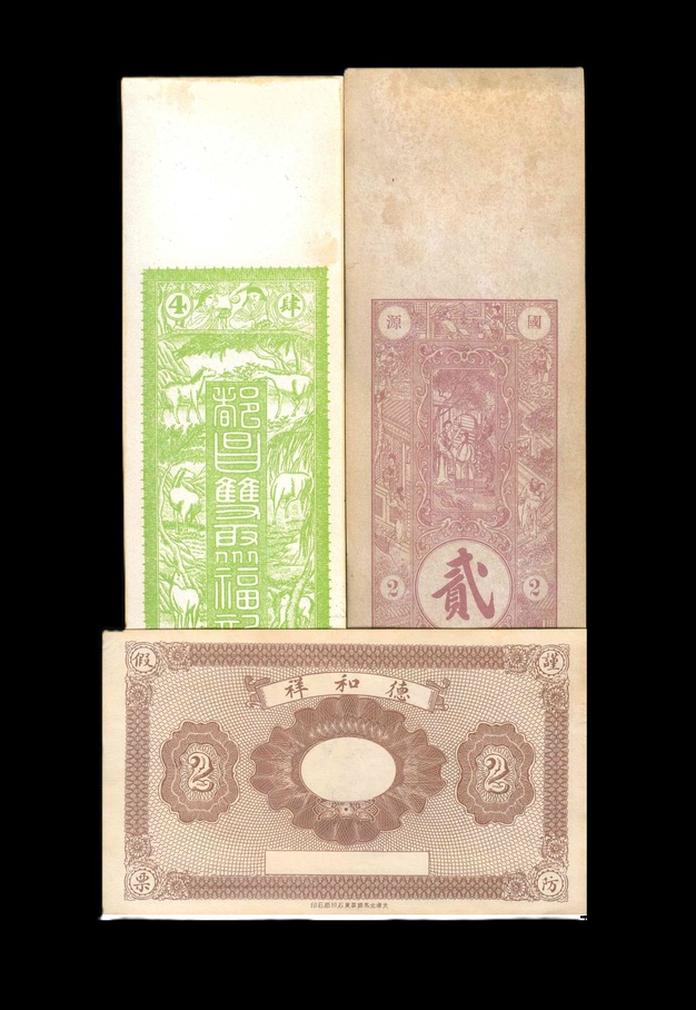 ND 民國壽光慶豐永銅元2吊/都昌苑家庄雙聚福肆千/曲陽德和祥2吊 (地方錢庄票) 品相如圖 編號:NIL(共3張)