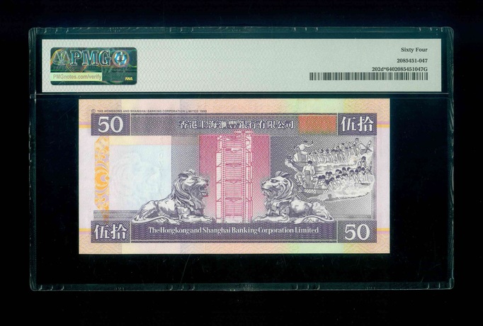 1998 香港上海滙豐銀行 $50 PMG 64 編號:ZZ077171(補版系列)