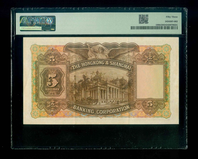 1959 香港上海滙豐銀行 $5 PMG 53 編號:M/H 672783