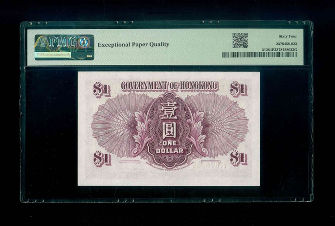 1936 香港政府 $1 PMG 64 EPQ 編號:R676537