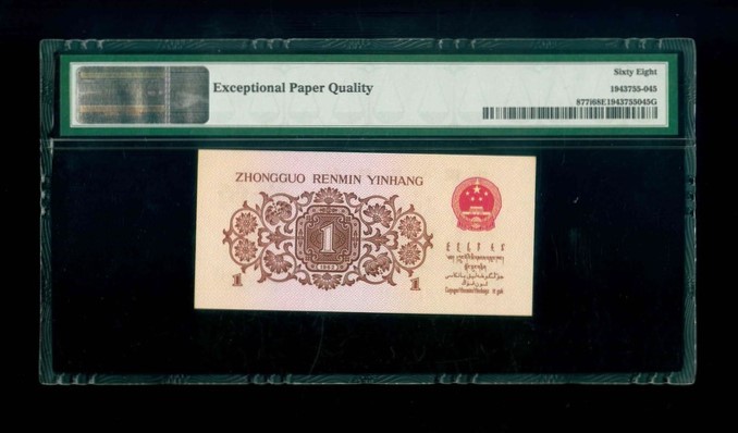 1962 中國人民銀行 壹角 PMG 68 EPQ 編號:V II 08680245(頂級雪白)