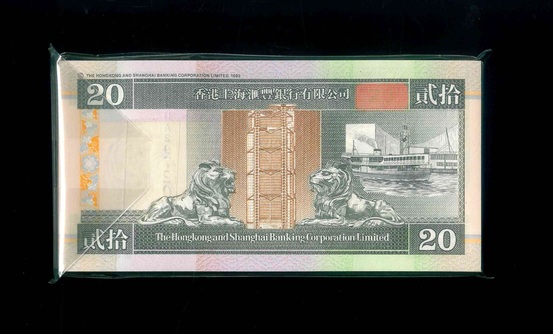 2002 香港上海滙豐銀行 $20 UNC 編號:UA297101-200(標準百連,頂級雪白)