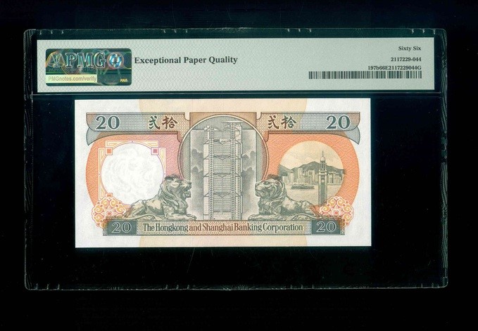 1991 香港上海滙豐銀行 $20 PMG 66 EPQ 編號:CC000644(頂級雪白)