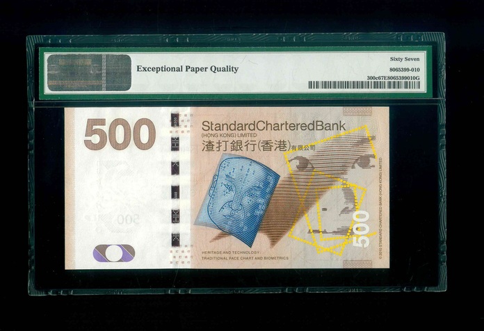 2013 香港渣打銀行 $500 PMG 67 EPQ 編號:BB274813(頂級雪白)