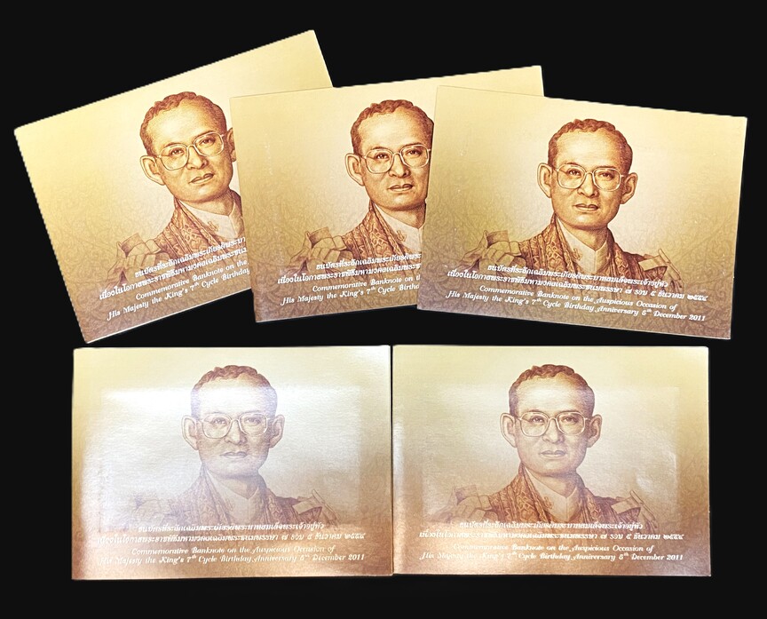 2011 泰國泰皇(拉瑪九世84歲生辰) 100 baht UNC 編號:見圖…(共5張,連摺套)