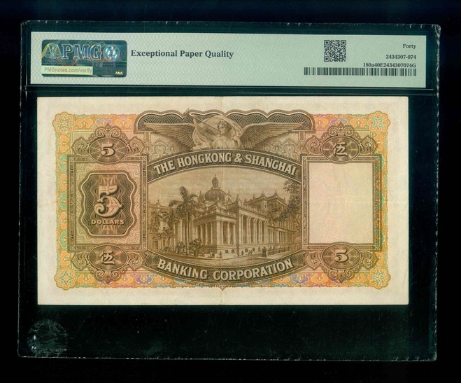 1957 香港上海滙豐銀行 $5 PMG 40 EPQ 編號:H/H 615165