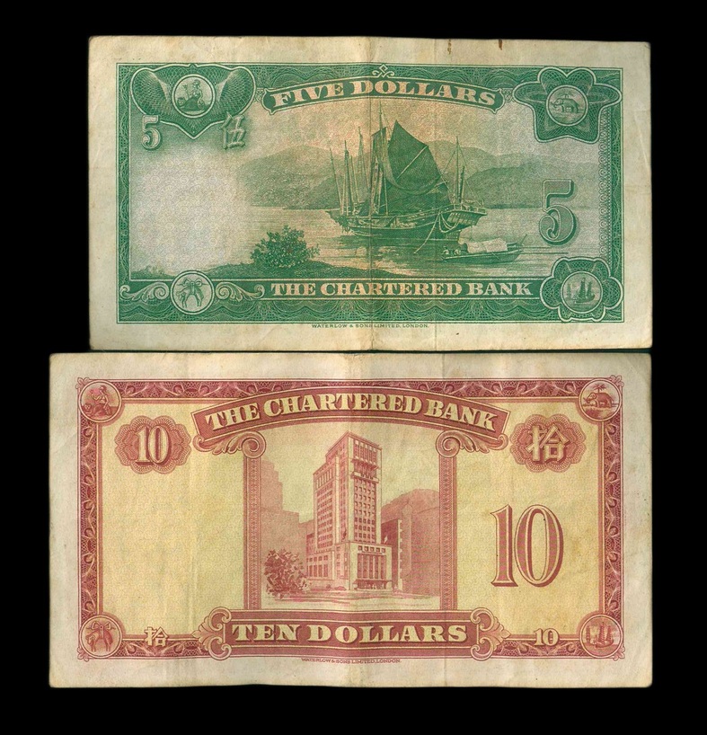1959 香港渣打銀行 $5 $10 EF+ 編號:S/F 2518780...(共2張)