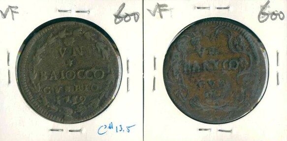1712/59 Papal States (教皇國) Baiocco VF 編號:NIL(共2枚)