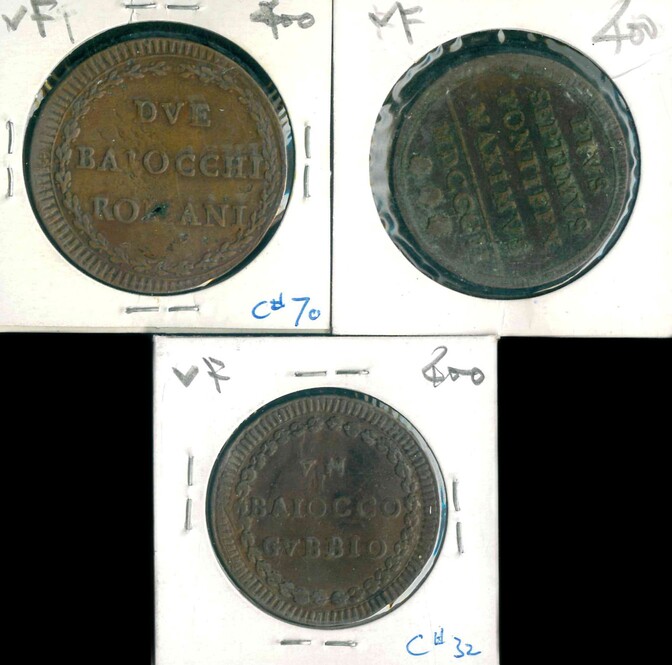 1775-1802 Papal States (教皇國) 1,2 Baiocchi VF 編號:NIL(共3枚)