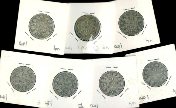 1865R (Yr.XXR) Papal States (教皇國) 20 Baiocchi VG/F 編號:NIL(共7枚)