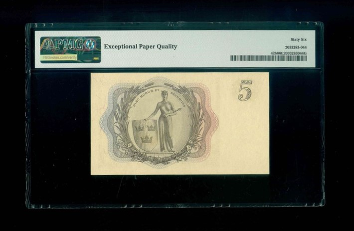 1955 瑞典 5 Kronor PMG 66 EPQ 編號:ED847424(頂級雪白)