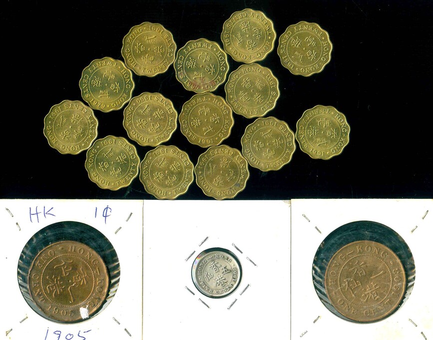 1903-1991 香港一仙 五仙 2毫 品相如圖 編號:NIL(共17枚)