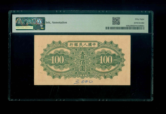 1949 中國人民銀行 $100 PMG 58 編號:9911471(Ink, Annotation)
