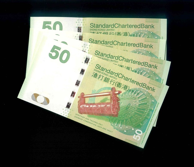 2016 香港渣打銀行 $50 UNC 編號:CC324576…(共4張,雙冠亂蛇)