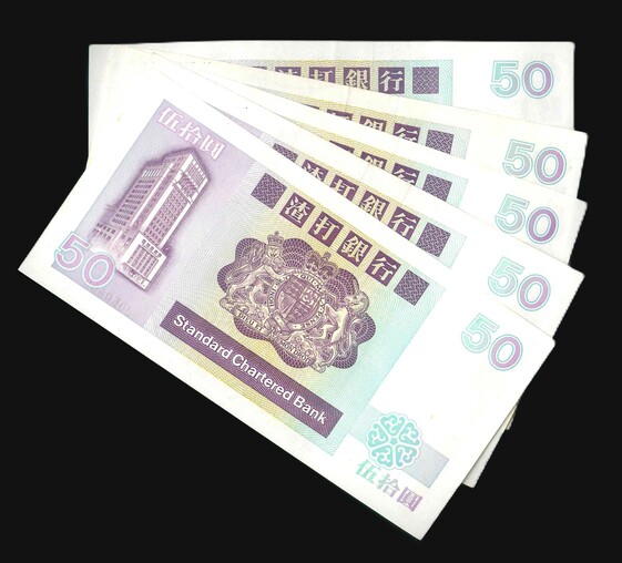 1988-1992 香港渣打銀行 $50 EF-UNC 編號:C415805…(共5張)
