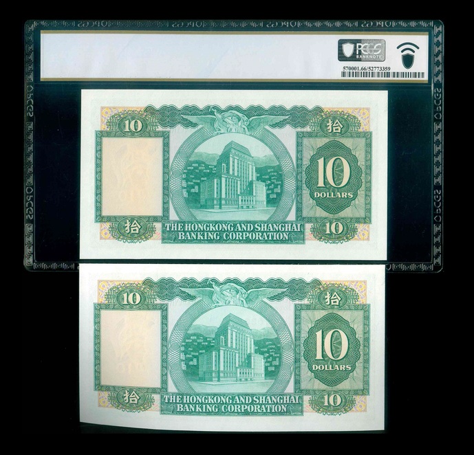 1982 香港上海滙豐銀行 $10 PCGS 66 PPQ/UNC 編號:H/13 001631-32(共2張,連號,頂級雪白)