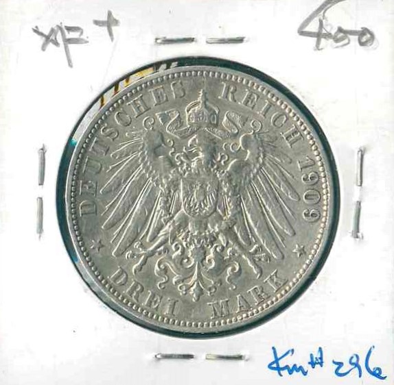 1909J 德國 (Hambourg) 3 Marks XF+ 編號:NIL