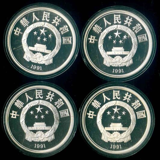 1991 中國世界文化名人紀念套幣 4全 Proof 編號:NIL(証書連盒)