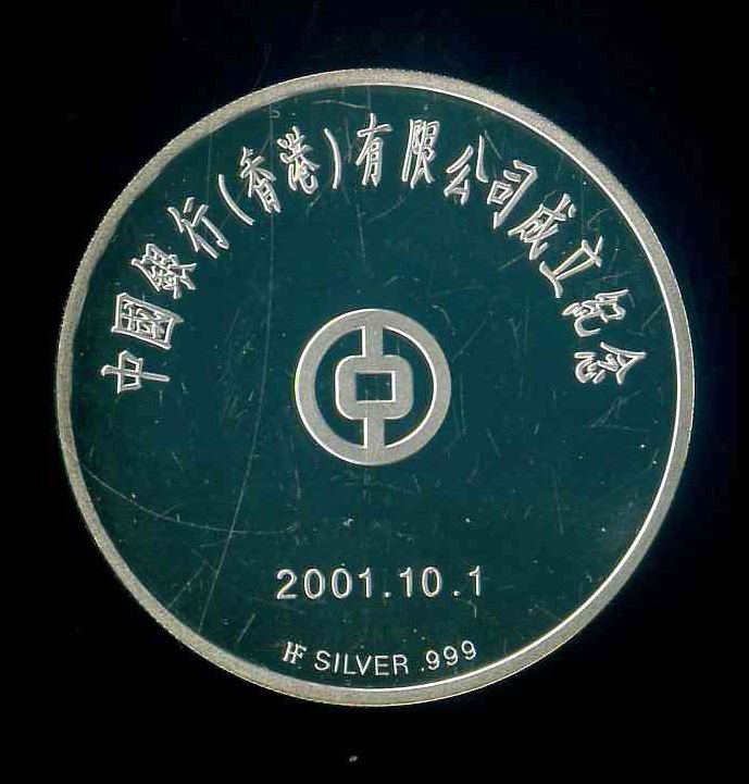 2001 中國銀行成立紀念銀章 (2oz) UNC 編號:NIL