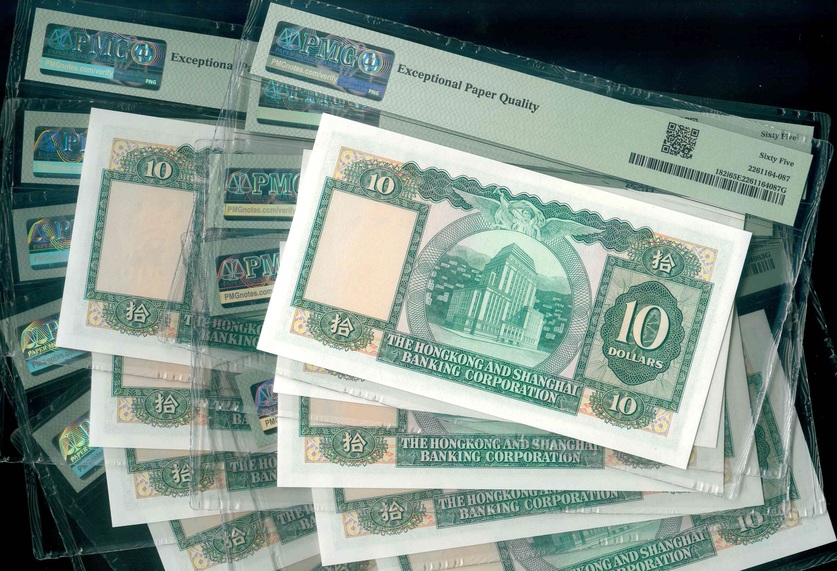 1980 香港上海滙豐銀行 $10 PMG 65 EPQ 編號:G/36 827551-60(十連號,含豹子,頂級雪白)