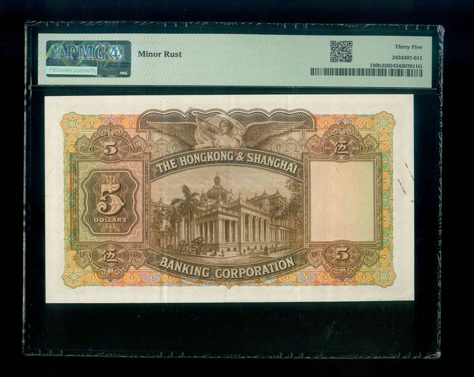 1959 香港上海滙豐銀行 $5 PMG 35 編號:M/H 191456