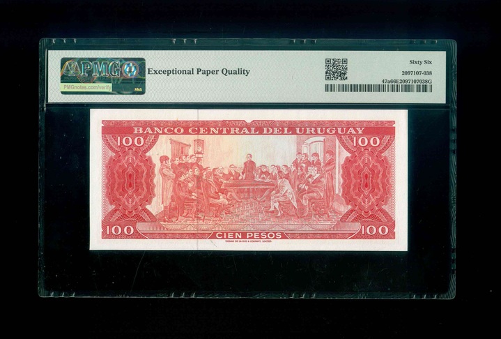 1967ND Uruguay(烏拉圭) 100 Pesos PMG 66 EPQ 編號:42075622