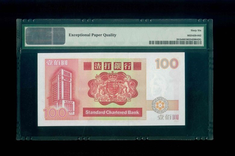 1987 香港渣打銀行 $100 PMG 66 EPQ 編號:AS012795(頂級雪白)
