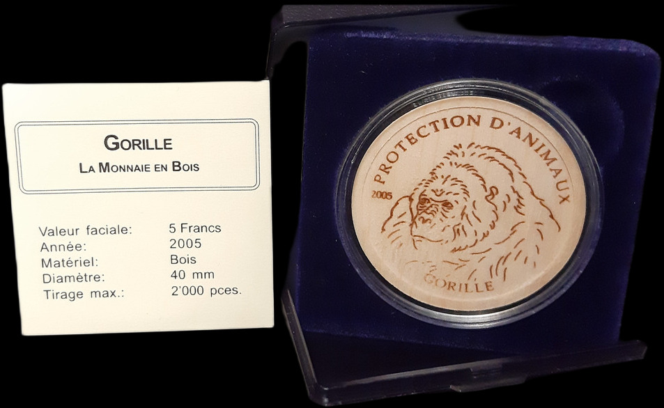 2005 剛果民主共和國 (大猩猩-木製硬幣) 5 Fr 品相如圖 編號: NIL(連盒)